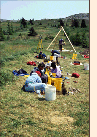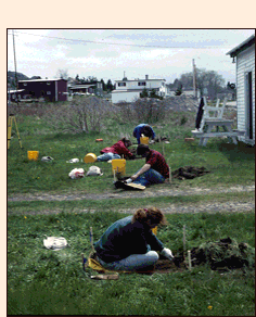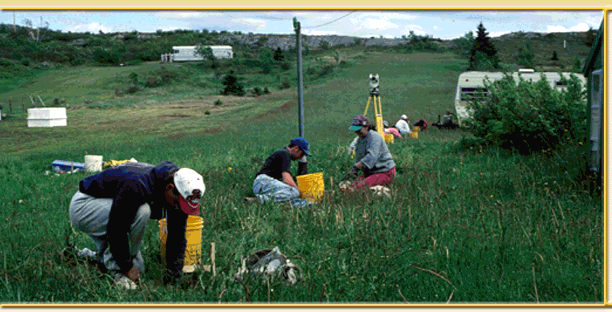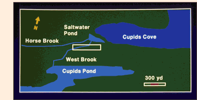 Our survey began on June 7, 1995 but before we arrived in Cupids we had already consulted the letters and other documents left behind by the people who settled Cupers Cove and found three clues that helped narrow down the location of the site. In his letter of 16 May 1611, John Guy tells us that the lake at the bottom of Cupids harbour was "within twelue score of our habitation". Since a score is a distance of twenty paces, the plantation must have stood roughly 240 paces from the lake. Both Guy and another colonist, Henry Crout, mention that the plantation was near a brook. Guys says that he went to the brook every morning to wash and Crout mentions that in the spring of 1613, after a hard winter, they were catching trout in that brook. Finally, Crout mentions that the plantation was on the landward side of the little pond at the bottom of Cupids harbour. Taken together, these three clues defined an area of about 1/2 km at the bottom of Cupids harbour somewhere within which the colony must once have stood.