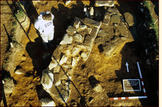 At this point, there can be little doubt that Structures 1 and 3 are the dwelling house and storehouse erected by John Guy's men and completed by about 1 December, 1610. Our work over the last number of years has also uncovered evidence of the plantation forge; the 120 ft. x 90 ft. palisade that enclosed the area around these buildings; one of the two bastions, or "flankers", erected by the colonists to guard the plantation; stone defense works and a gun platform that almost certainly were part of the fort erected by Guy's men in 1612 to guard against pirate attacks; the first sawpit dug by the colonists shortly after they arrived in August 1610; and the stone footing for a building, possibly a storehouse for salt cod, erected over part of that sawpit sometime between roughly 1620 and 1640. To find out more about some of these discoveries and other discoveries made elsewhere on the Baccalieu Trail, click on "New Discoveries" at the top of this page.