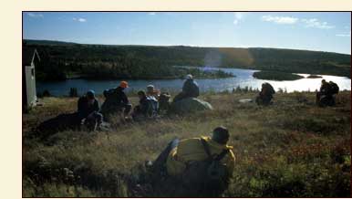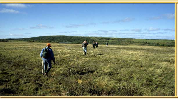 ![]() On September 1, 1612 Henry Crout lead a group of colonists overland from the Cupers Cove plantation in Conception Bay towards Trinity Bay cutting and marking a trail as they went. By establishing an overland route to the bay the colonists hoped to make contact and eventually set up a fur trade with the Beothuk Indians who lived there. On the first trip, they travelled for three and a half days and were within about three miles of the bay when they were forced to turn around. On September 9, a second party set out to complete the trail and cut it wide enough, Crout says, “for two men to pass together”. We know that the trail was completed because when John Guy sailed into “Mount Eagle Bay” (present day Hopeall) in Trinity Bay on October 22 of the same year, he noted in his journal that this was the place, “that the way overland from Avon in the bay of Conception is marked vnto”. While we do not know exactly where the “Avon” mentioned by Guy was located, it was probably near “Avon Hill” which is mentioned by Crout in his diary and seems to have been within a short distance of Cupers Cove. Henry Crout’s “way”, as he called it, is one of the oldest European trails in North America. Crout left us two accounts of his journey: one in his weather diary which he kept from September 1, 1612 to May 13, 1613 and the other in a letter he wrote to Sir Percival Willoughby on September 8, 1612, just two days after he returned from the first trip. In the fall of 1997, the Baccalieu Trail Heritage Corporation’s archaeology crew set out to see if we could retrace the route followed by Crout and his companions. Between October 30 and November 6 1997 we spent five days hiking across the roughly eighteen miles (29 km) of woods, bogs and barrens that lie between Cupids and Hopeall trying to follow in Henry Crout’s footsteps and match his descriptions to the terrain we encountered along the way. The experience turned out to be a fascinating combination of historical detective work and wilderness adventure. Images (from left to right, top to bottom) 1. Approaching Black Pond on Crout’s Way. |